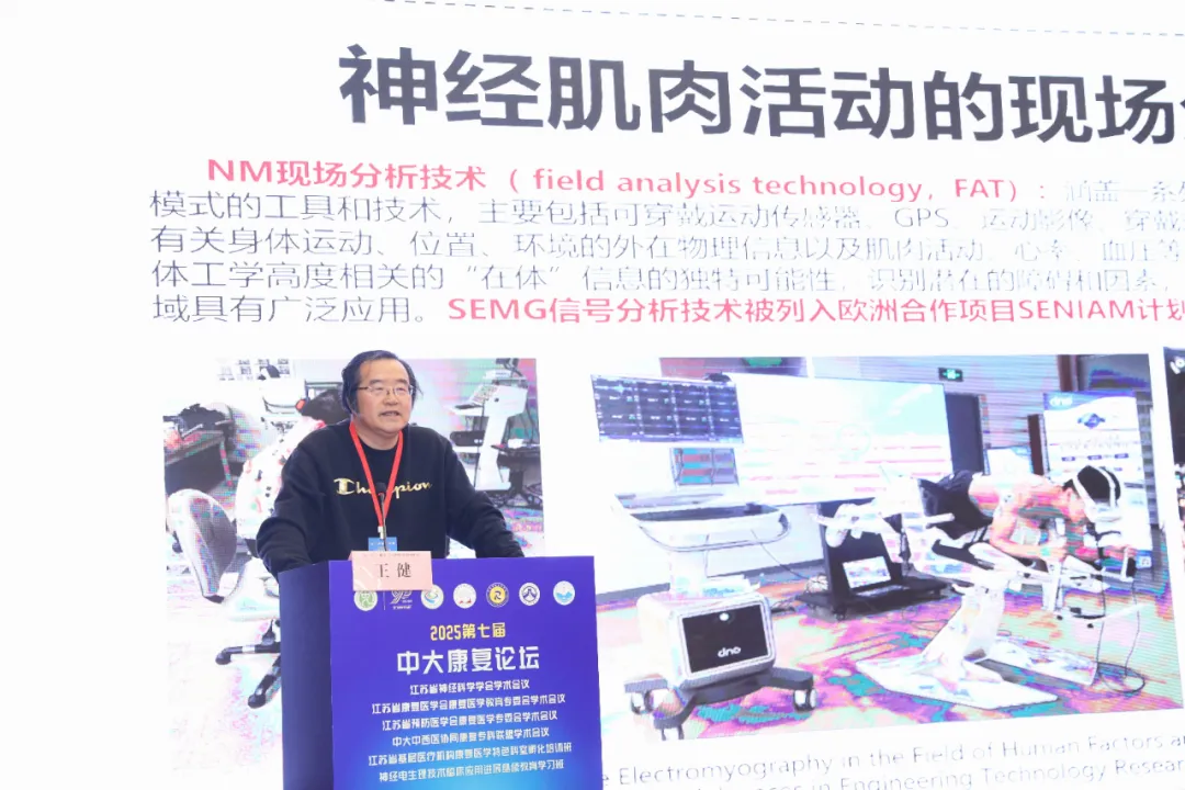 在主旨报告中,王健教授发表了题为《sEMG信号二维联合分析技术及其应用研究》的精彩报告,系统阐述了表面肌电信号在时域与频域联合分析方面的前沿方法,并展示了该技术在精准评估肌肉功能状态、揭示运动控制机制方面的突破性应用,为分论坛的深入探讨奠定了坚实的理论基础。