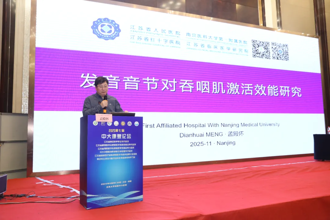 孟殿怀教授分享了《发音音节对吞咽肌激活效能研究》,揭示了语言训练中肌电活动的规律及其在吞咽康复中的指导意义。